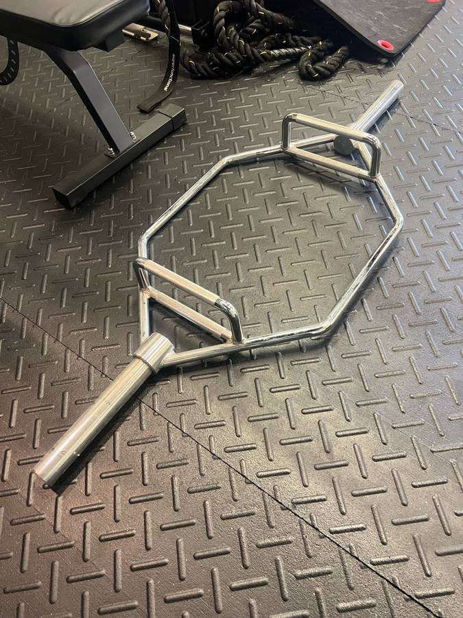 A heavy-duty Olympic trap bar engineered for safe, powerful strength training. Its hexagonal design allows users to perform deadlifts, shrugs, and loaded carries with reduced lower-back strain and improved lifting mechanics.